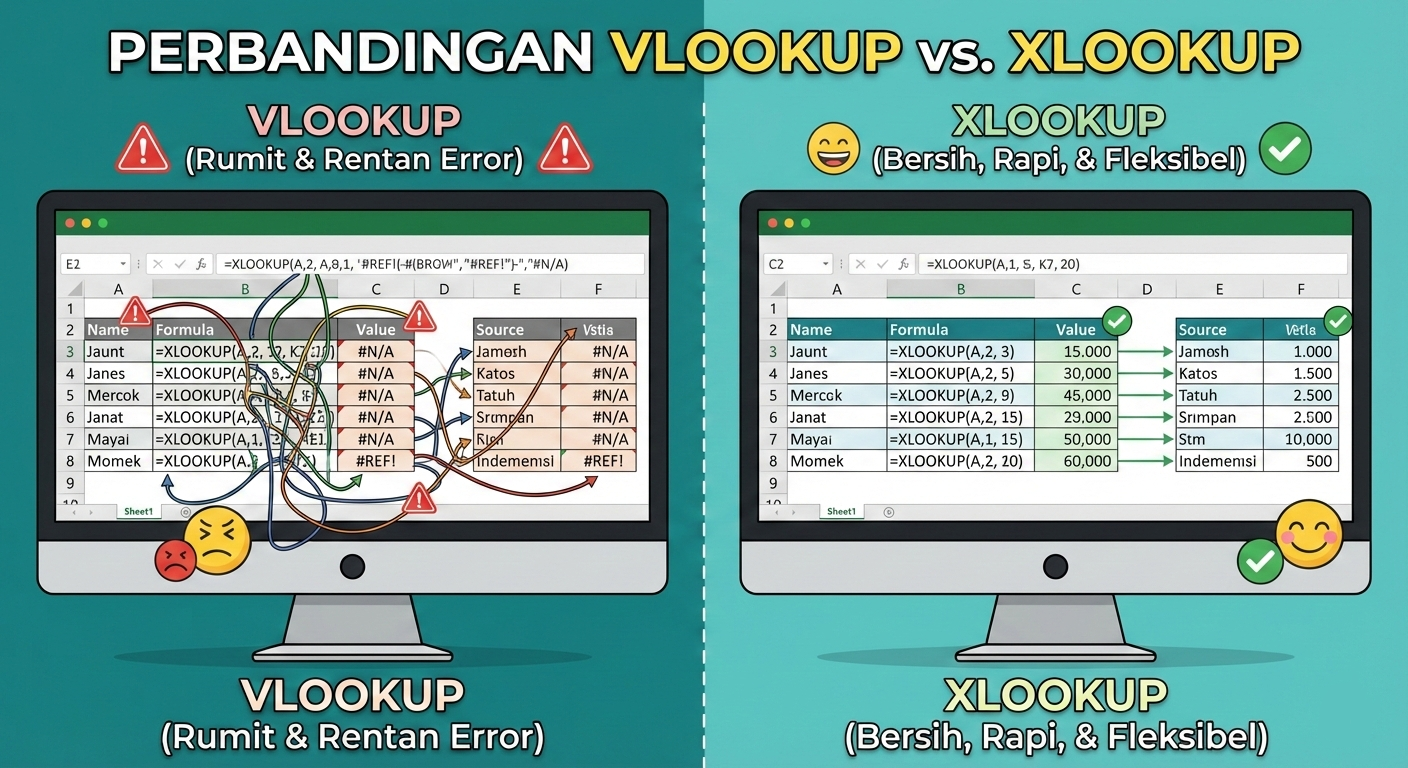 Dengan XLOOKUP, kamu bisa cari data apa aja dengan cara yang jauh lebih simpel dan gak gampang error. Penasaran kan? Yuk, kita bedah bareng-bareng!